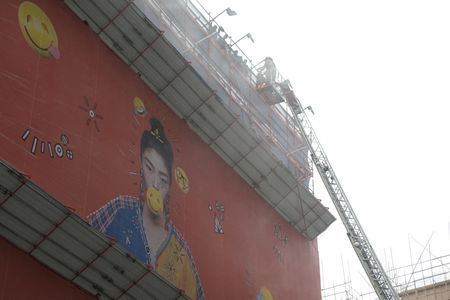 The fire broke out in a utility room on a lower level of the building’s mall at noon, media said, before it spread to bamboo scaffolding cladding the exterior.