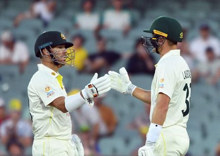 ADELAIDE (Reuters) -David Warner fell short of his century but Marnus Labuschagne remained on course for a hundred as they put Australia, missing regular skipper Pat Cummins, in a strong position against England in the day-night second Ashes test on Thursday.