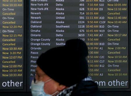 SEATTLE (Reuters) – Rising COVID-19 cases, along with bad weather, caused airlines to cancel more than 1,000 flights on Monday, and the spread of the Omicron variant prompted the U.S.