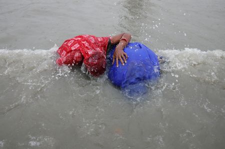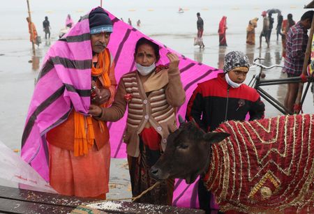 PRAYAGRAJ, India (Reuters) -Hundreds of thousands of Hindu worshippers gathered on the banks of India’s Ganges river on Friday for a holy bathe despite a 30-fold rise in coronavirus cases in the past month.