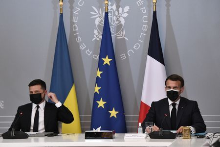 PARIS (Reuters) – French President Emmanuel Macron held separate talks with the Russian and Ukrainian leaders on Thursday to try to make progress on the status of the Donbass region as part of efforts to defuse tensions, the French presidency said in a statement.