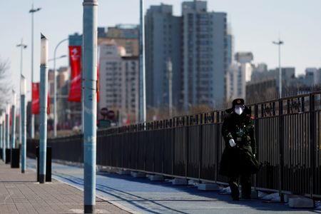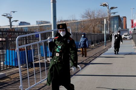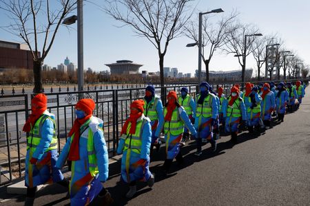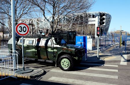 BEIJING (Reuters) -The Beijing Winter Games opened on Friday night in a snow- and ice themed ceremony at the Bird’s Nest stadium that concluded with the cauldron lit by two young Chinese Olympians, one of them a member of China’s Uyghur minority.