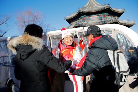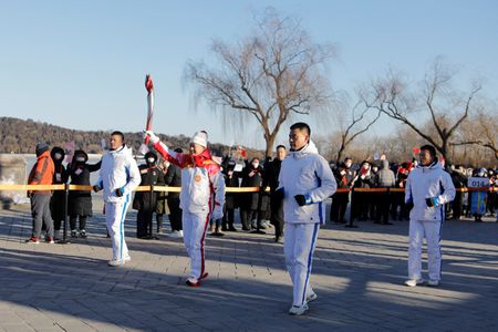 BEIJING (Reuters) – The Olympic torch relay began its final stretch on Friday through former imperial gardens and along an ancient canal, with Chinese Olympic medallist Ding Ning among those carrying the flame along a route shortened to three days because of COVID-19.