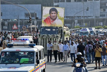 MUMBAI (Reuters) -Lata Mangeshkar, one of India’s best known cultural icons and a singer who defined music for generations of her countrymen, died on Sunday and was given a state funeral as politicians and personalities united in mourning.