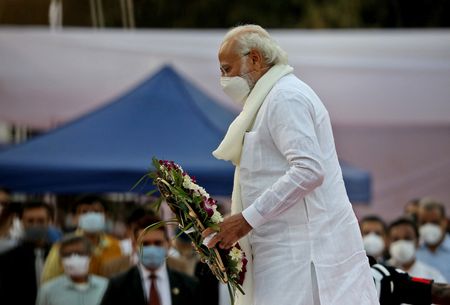 Modi joined mourners at a packed open air state funeral late on Sunday after her body, wrapped in the Indian flag, had been paraded through the streets of her home city Mumbai on a truck decorated with flowers.
