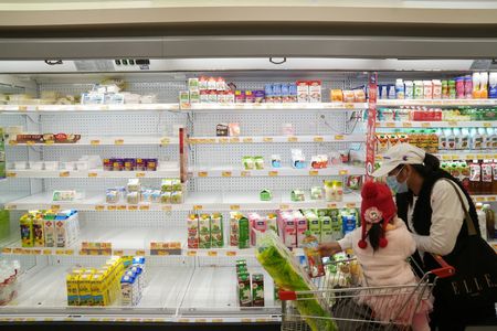 HONG KONG (Reuters) – Hong Kong residents crowded supermarkets and neighbourhood fresh food markets on Monday to stock up on vegetables, noodles and other necessities after a record number of COVID-19 infections in the city and transport disruptions at the border with mainland China.