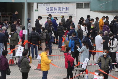 HONG KONG (Reuters) -Hong Kong reported a record 614 new COVID-19 cases on Monday, health authorities said, in the biggest test yet for the city’s zero-COVID strategy as it grapples to contain a growing outbreak.