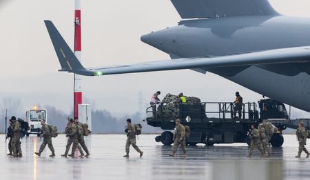 RZESZOW, Poland (Reuters) – Two U.S. military planes could be seen landing at a Polish airport on Monday morning and more were expected later in the day, bringing the bulk of the extra troops that President Joe Biden ordered to Europe last week over the Ukraine crisis.