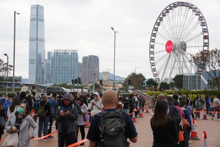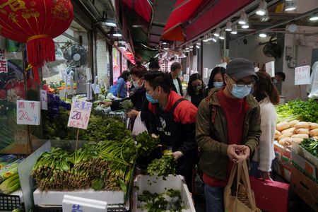 HONG KONG (Reuters) -Hong Kong announced stringent new coronavirus restrictions and record new infections on Tuesday, while a shortage of vegetables added to the misery as truck drivers who tested positive for COVID-19 were unable to bring them from mainland China.