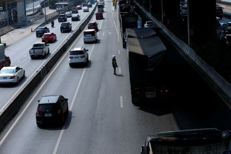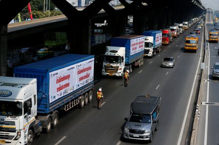BANGKOK (Reuters) – Hundreds of freight trucks deliberately clogged a major thoroughfare of Thailand’s notoriously congested capital on Tuesday, seeking to pressure the government into lowering diesel prices.