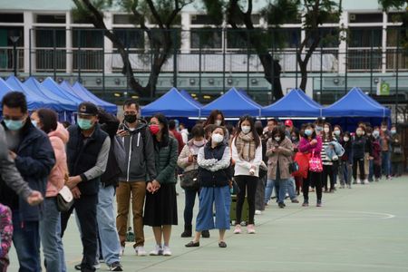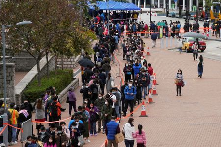 HONG KONG (Reuters) -Hong Kong’s daily COVID-19 infections nearly doubled to a record 1,161 cases on Wednesday, authorities said, as the global financial hub battles a rapid surge that is shaping as the biggest test yet of its ‘dynamic zero’ policy.