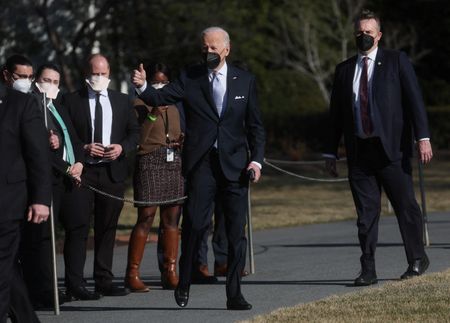 (Reuters) – President Joe Biden held a call with leaders of U.S. allies on Friday where they raised concerns about Russia’s buildup of military forces around Ukraine and expressed a desire for a diplomatic solution to the crisis, the White House said.