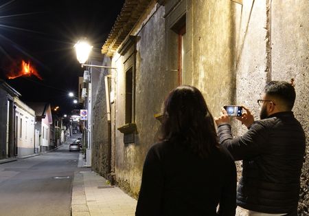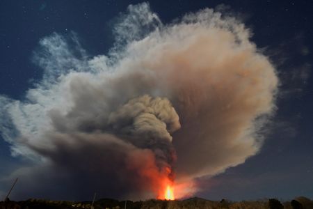 ROME (Reuters) – Italy’s Mount Etna, Europe’s highest and most active volcano, erupted in spectacular fashion late on Thursday, lighting up the night sky with explosions and bright red molten lava.