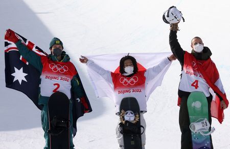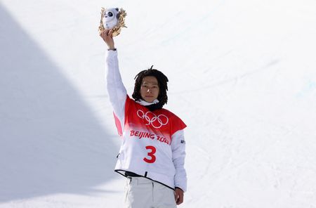 ZHANGJIAKOU, China (Reuters) – Japan’s Ayumu Hirano soared to gold at the men’s snowboard halfpipe final on Friday at the Beijing Games, while a tearful Shaun White said he was thankful for his final run despite just missing out on the podium in his fifth and last Olympics.