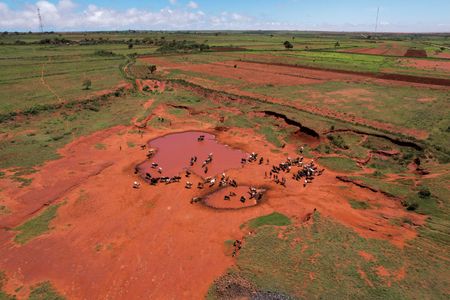 SAMPONA COMMUNE, MADAGASCAR (Reuters) – Standing at the side of a highway in the south of Madagascar, 25-year-old water seller Masy is grateful for the heavy rains that fell last week when Cyclone Batsirai hit.