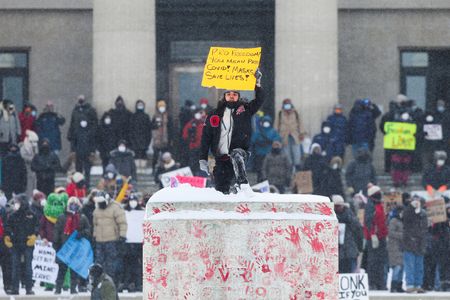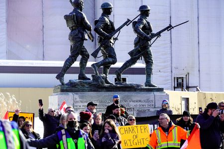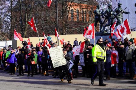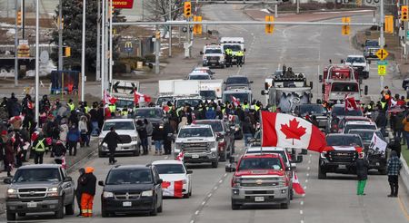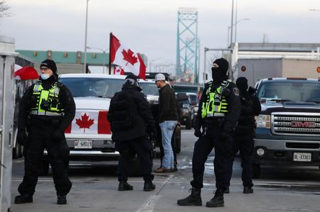WINDSOR, Ontario (Reuters) – Canadian police made the first arrest of a protester blocking a key bridge to the United States on Saturday, more than a day after authorities moved in seeking to end the blockade of the important trade corridor.