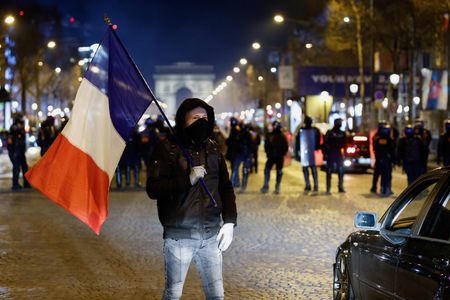 PARIS (Reuters) – A convoy protesting COVID-19 restrictions breached police defences and drove into central Paris on Saturday, snarling traffic around the Arc de Triomphe and on the Champs Elysees, as police fired tear gas at demonstrators.