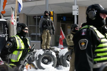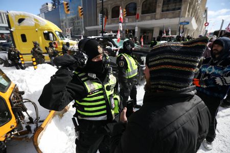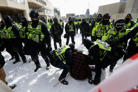 OTTAWA (Reuters) – Police began towing trucks from central Ottawa on Friday and stepped up arrests of protesters in a bid to end a trucker-led movement that has blockaded Canada’s capital for three weeks and embarrassed Prime Minister Justin Trudeau’s government.