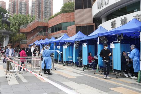 HONG KONG (Reuters) -Hong Kong parents rushed children as young as 3 years old to vaccination centres this week as the government lowered the age limit for the shots and the deaths of two toddlers exacerbated concerns in a city struggling to cope with a COVID-19 surge.