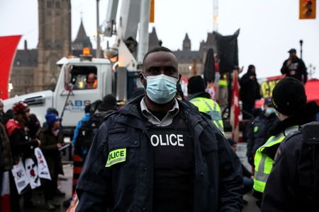 OTTAWA (Reuters) -Police warned protesters occupying central Ottawa of “imminent” action to clear them from the capital and began making some arrests on Thursday to end a crisis that Canadian Prime Minister Justin Trudeau warned was threatening public safety.