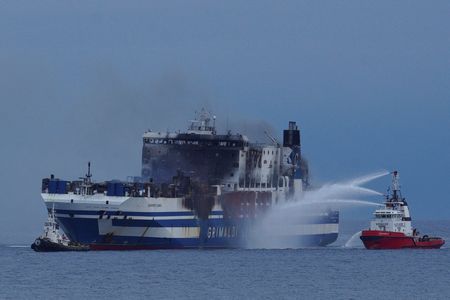CORFU, Greece (Reuters) -Firefighters battling for a third day a blaze on a ferry sailing from Greece to Italy recovered on Sunday the body of a passenger listed as missing, Greek authorities said.