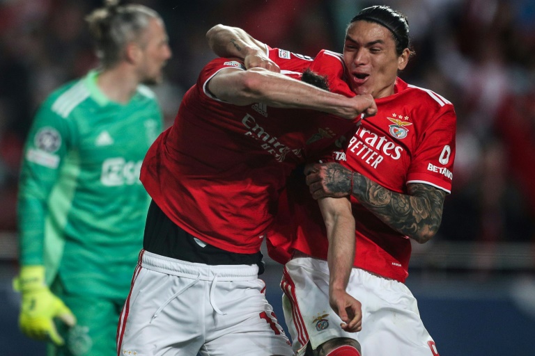 Benfica’s Ukrainian striker Roman Yaremchuk celebrated a Champions League goal on Wednesday by revealing a shirt bearing his country’s coat of arms as fears of a Russian invasion of his homeland grew.
