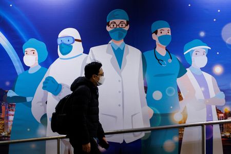 HONG KONG (Reuters) – Hong Kong reported a new record of 8,798 COVID-19 infections on Thursday, health authorities said, as the global financial hub struggles to control a worsening outbreak that has overwhelmed its health system ahead of a citywide compulsory testing scheme in March.