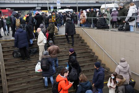 KYIV (Reuters) – People in Kyiv stood in long queues trying to stock up on supplies on Thursday after Russian forces invaded Ukraine, and a huge traffic jam blocked the main road heading west out of the capital as others tried to flee.