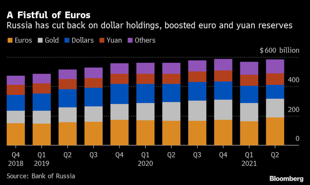 About 13% of Russia’s reserves, or an estimated $77 billion, were in Chinese assets as of June 2021, the most recent figures from the Bank of Russia. Selling off those holdings would give Russia much-needed liquidity.
