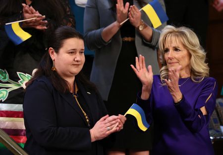 WASHINGTON (Reuters) – As U.S. President Joe Biden spoke about the need to support Ukrainians in their fight against the Russian invasion of their country, lawmakers and officials also showed their support for Ukraine through their attire.
