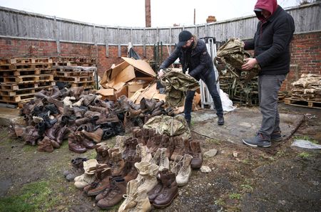 LONDON (Reuters) – In a small military clothing outlet on the south coast of England, a group of volunteers are racing to meet the demand from Ukrainians who are sourcing equipment in Britain to send back home for civilian fighters.