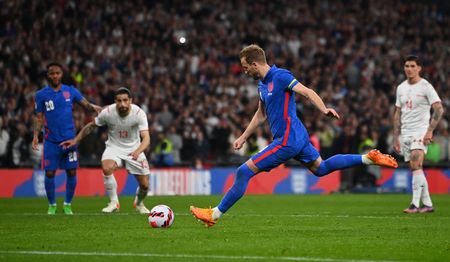 LONDON (Reuters) -Harry Kane converted a 78th-minute VAR penalty to give England a 2-1 victory over Switzerland in a generally flat Wembley friendly on Saturday, taking the striker alongside Bobby Charlton on 49 England goals and behind only Wayne Rooney (53).