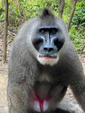Found only in Nigeria, Cameroon and Equatorial Guinea, drills have pitch-black faces and light brown-grey fur.