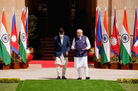 KATHMANDU (Reuters) -Nepal’s Prime Minister Sher Bahadur Deuba met his Indian counterpart Narendra Modi and inaugurated the Himalayan nation’s only railway link with its southern neighbour on Saturday in a summit meant to deepen relations.