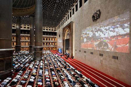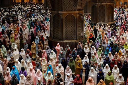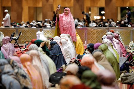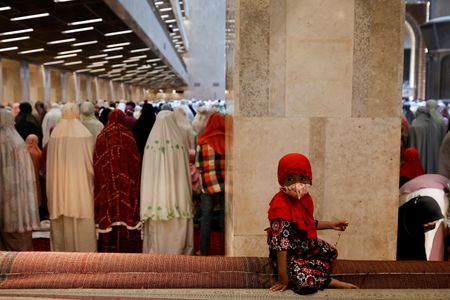 JAKARTA (Reuters) – The world’s largest Muslim-majority nation of Indonesia welcomed the start of the holy fasting month of Ramadan with a mass prayer at Jakarta’s grand mosque on Saturday, with plateauing coronavirus cases allowing for eased restrictions this year.
