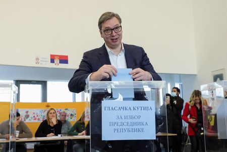 BELGRADE (Reuters) -Serbia’s incumbent President Aleksandar Vucic is set to win presidential vote on Sunday with 59.8% of the votes, according to a projection by pollsters Ipsos and CeSID, based on a sample of the partial polling station count.