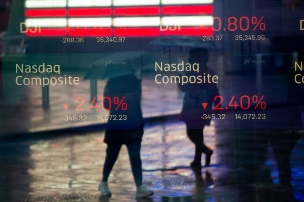 The tech-heavy Nasdaq 100 entered a bear-market decline of 20% in the first quarter, though losses were pared at the end of March.