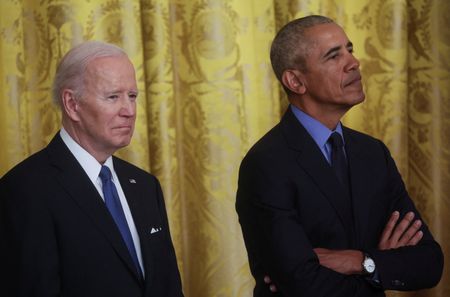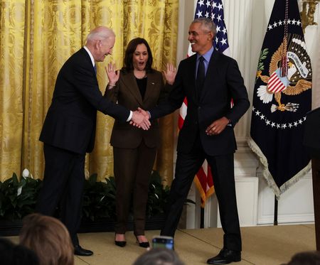 WASHINGTON (Reuters) -Former President Barack Obama returned to the White House on Tuesday for the first time since leaving office in 2017 to tout the benefits of his signature healthcare law and bolster his friend and former governing partner, President Joe Biden.