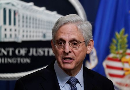 WASHINGTON (Reuters) – U.S. Attorney General Merrick Garland tested positive for COVID-19 on Wednesday afternoon after having earlier held a press conference with other top officials, the Justice Department said, adding he was not experiencing symptoms.