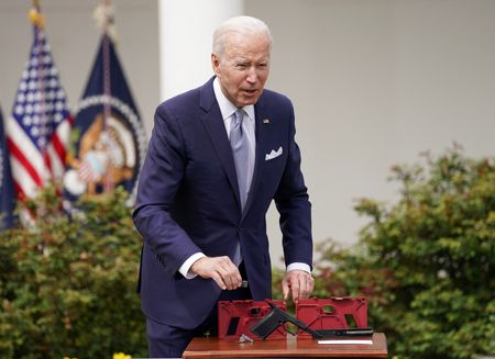 WASHINGTON (Reuters) -President Joe Biden unveiled a new rule to rein in so-called ghost guns and ban the manufacturing of the untraceable firearms on Monday as the administration faces growing pressure to crack down on gun deaths and violent crime in the United States.