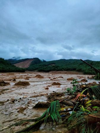 Images shared by the coast guard showed rescuers wading through forests and chest deep waters, carrying mud-covered survivors on stretchers.