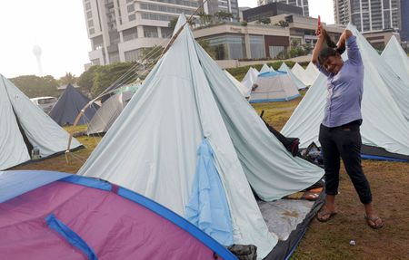 COLOMBO (Reuters) – On a patch of grass near Sri Lankan President Gotabaya Rajapaksa’s office in the commercial capital Colombo, around two dozen tents have been erected in a small but growing camp that is becoming the focal point of national protests.