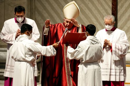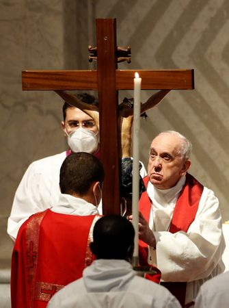 VATICAN CITY (Reuters) – Pope Francis presided at a solemn Good Friday service recalling the last hours in the life of Jesus, with the shadow of the war in Ukraine hanging over the most sombre day in the Christian calendar.