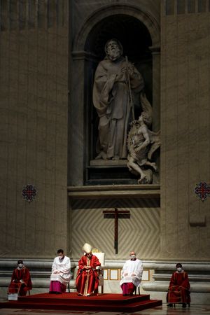 Peter’s Basilica at the start and end of the service, known as The Passion of the Lord.