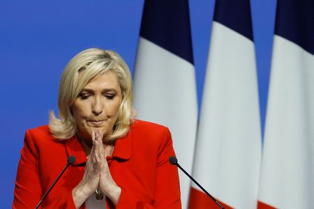 PARIS (Reuters) – French prosecutors said on Sunday they are examining a report by the European Union’s anti-fraud agency accusing far-right presidential candidate Marine Le Pen and members of her party of misappropriating thousands of euros’ worth of EU funds.