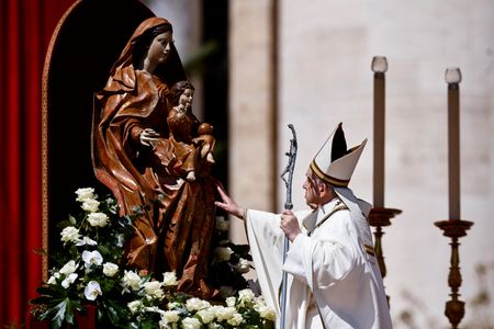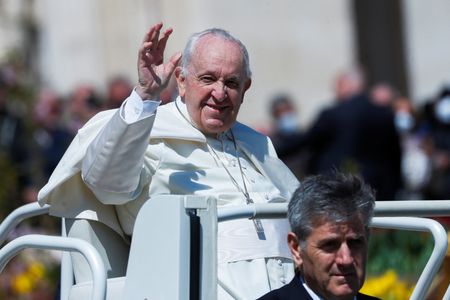 VATICAN CITY (Reuters) – Pope Francis implicitly criticised Russia for dragging Ukraine into a “cruel and senseless” conflict and urged leaders to strive for peace as he marked what he called an “Easter of war” on Sunday.