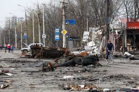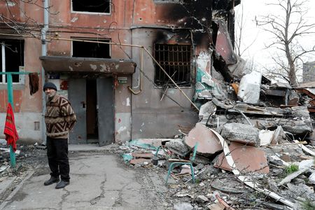 KYIV (Reuters) -Ukrainian soldiers resisted a Russian ultimatum to lay down arms on Sunday in the pulverised port of Mariupol, which Moscow said its forces had almost completely seized in what would be its biggest prize of the nearly two-month war.