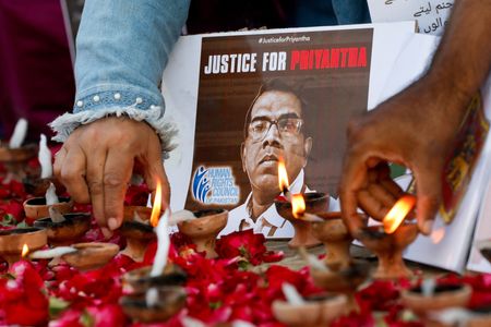 LAHORE, Pakistan (Reuters) -A court sentenced six men to death on Monday in a mass trial for the mob lynching of a clothes factory’s Sri Lankan manager in eastern Pakistan last year, the case’s public prosecutor said.