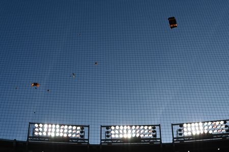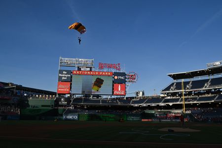 The Golden Knights parachuted into the Washington Nationals’ baseball stadium, Nationals Park, a little over a mile away from the U.S.
