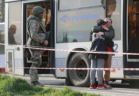 KYIV/BEZIMENNE, Ukraine (Reuters) -Around 100 Ukrainian civilians were evacuated from the ruined Azovstal steelworks in the city of Mariupol on Sunday, Ukrainian President Volodymyr Zelenskiy said, after the United Nations confirmed a “safe passage operation” was in progress there.